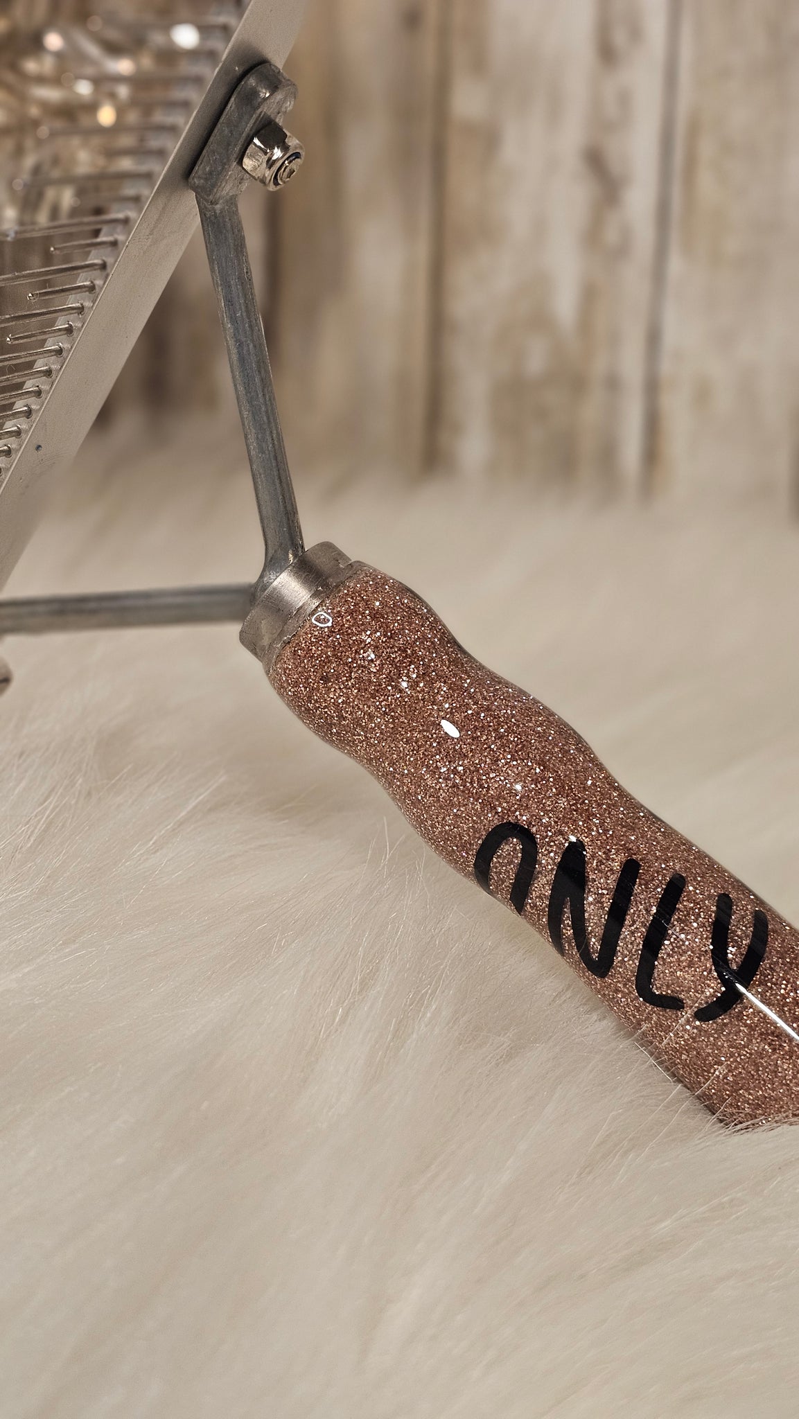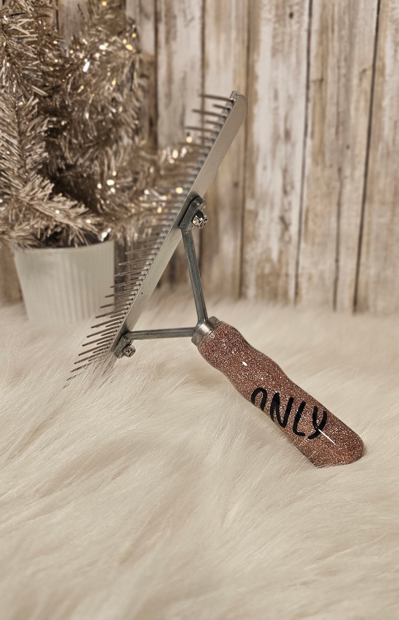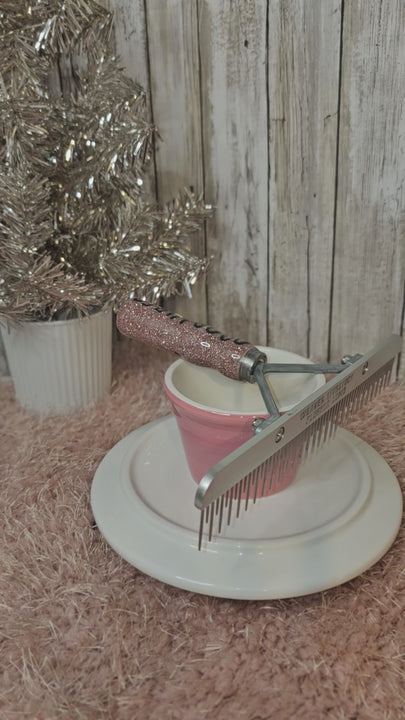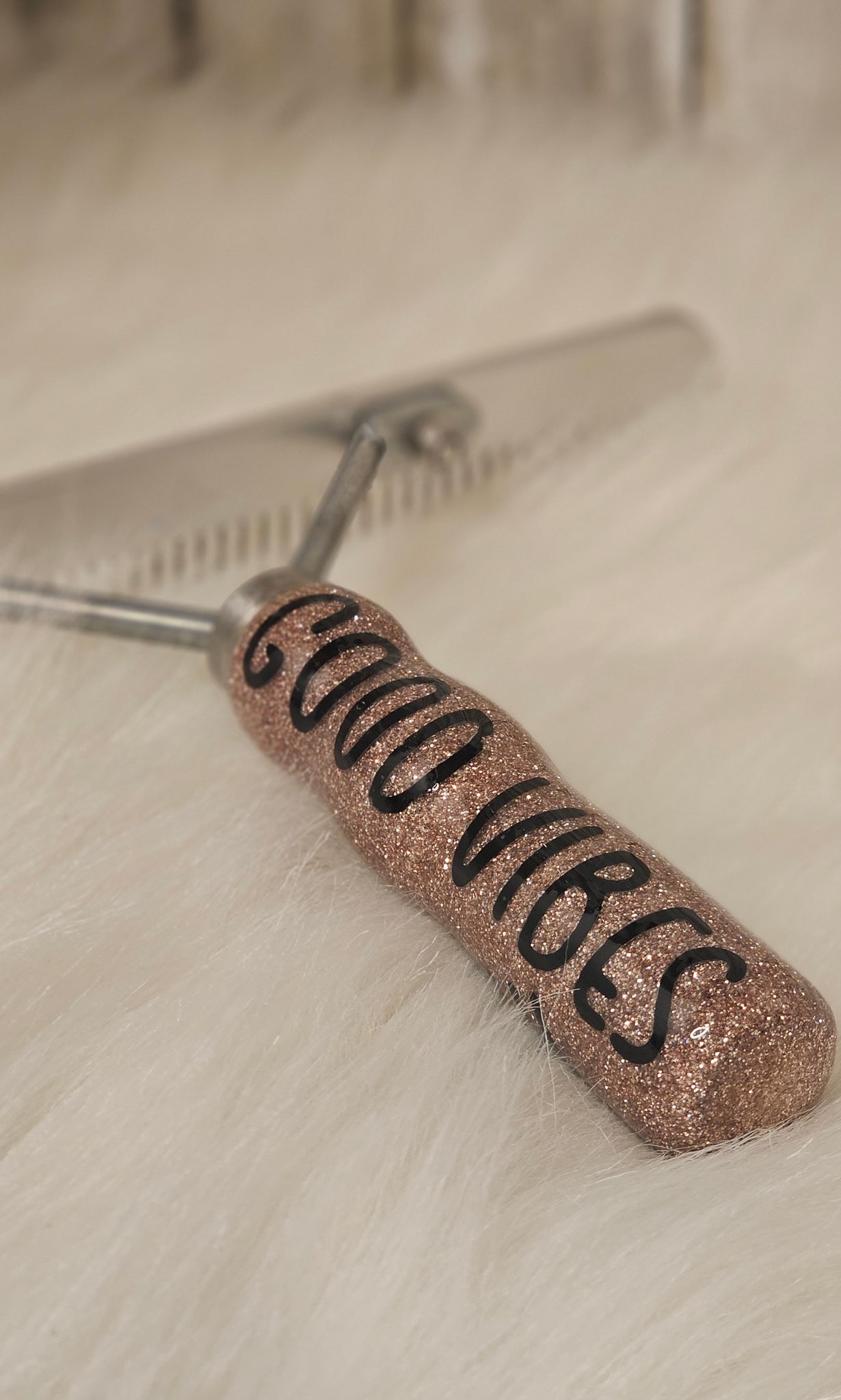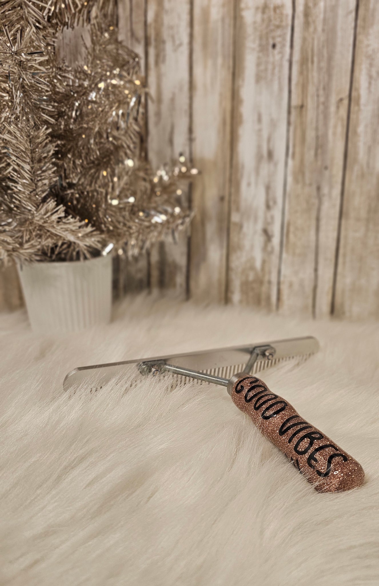 Keep your furry friend looking their best with a comb as fabulous as they are! This large raking grooming comb is specially designed for double-coated breeds, making it the perfect tool for tackling those thick undercoats with ease. With a pink, glittery handle and "Good Vibes Only" made using durable vinyl and epoxy, grooming time just got a little more fabulous.